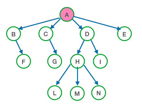 Molto simile alla visita in profondità per gli Visita in profondità - DFS. In questo caso si modifica leggermente la parte finale del metodo, dal momento che i figli non sono più massimo due.