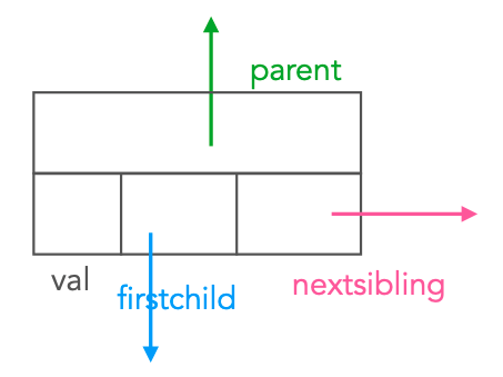 I nodi in questo caso sono memorizzati in un array di coppie, dove ogni coppia contiene il valore memorizzato nel nodo e l’indice dell’array che contiene il nodo padre (val, p).