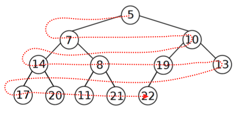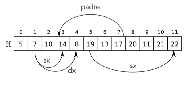 L’heap binario viene rappresentato come un array, dove vengono inserite le chiavi livello per livello da sinistra a destra.