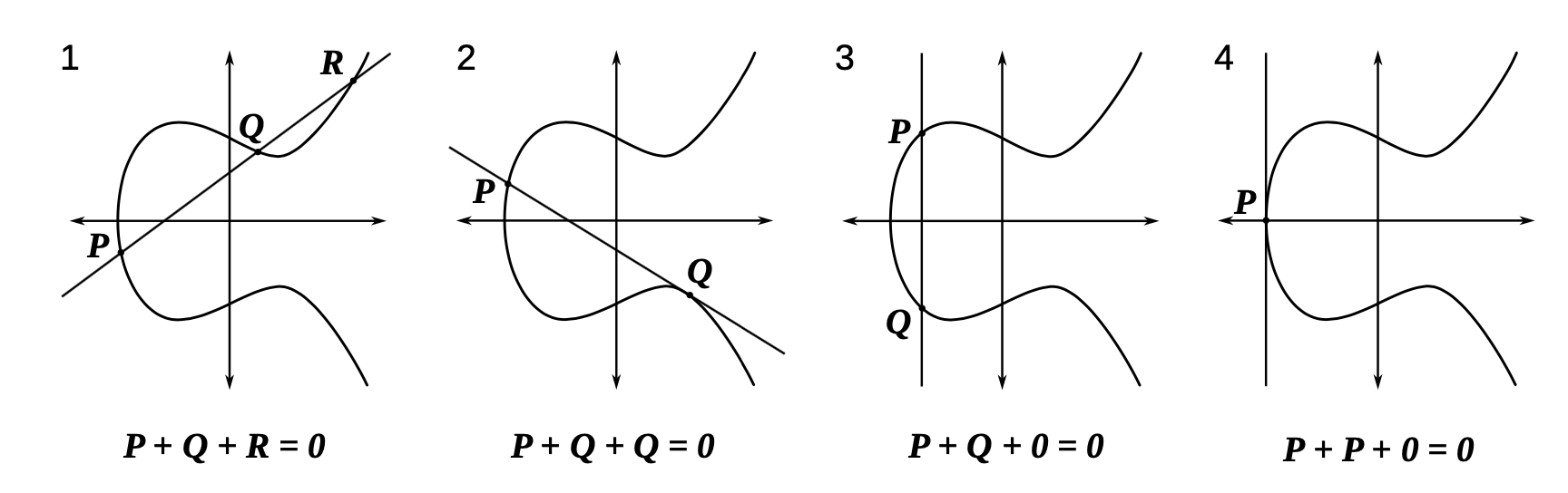 Con le elliptic curves, si ha , dove g è un punto sulla curva ellittica, e l’operazione è una moltiplicazione di un punto sulla curva.