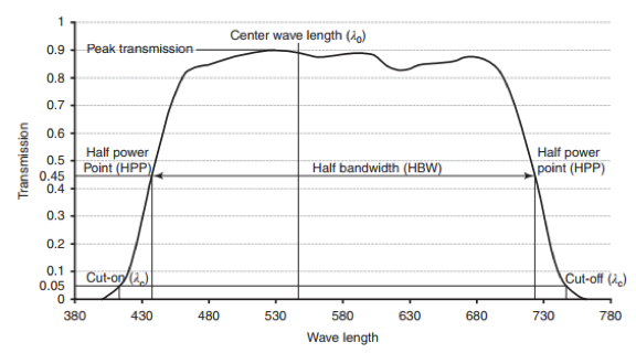 Halp Power Point: punti dove la trasmissione è la metà della massima raggiungibile. lunghezza d’onda centrale. Calcolata come dove i punti usati sono HPP. BW è la larghezza di banda. Larghezza del filtro specificati due punti. Solitamente si usano HPP, e quindi prende il nome di HBW - Halp Bandwidth.