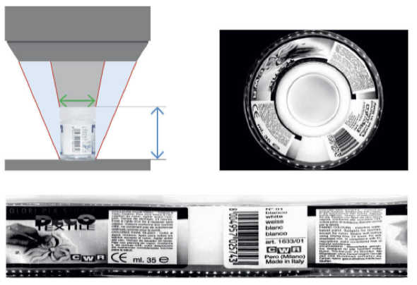 Si vede tutto il cerchio immagine, quindi il sensore inscrive il cerchio immagine! La lente deve avere un diametro maggiore rispetto all’oggetto da ispezionare.