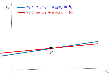 In un sistema ben condizionato, con , si ha che il punto trovato è il punto di intersezione.